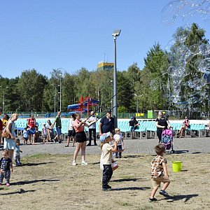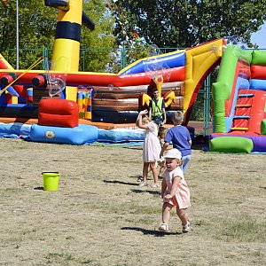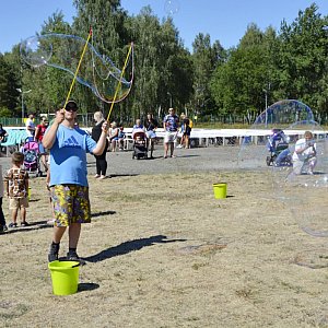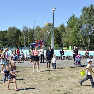 Do centrum piknikowego ściągnęły dziś (31.07) prawdziwe tłumy. Odbył się tam Festiwal baniek mydlanych z Kicią Kocią i to własnie bańki były największą atrakcją tej imprezy. Poza tym dzieci mogły się bawić na dwóch ogromnych dmuchańcach.