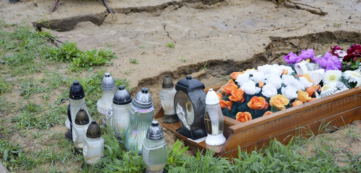 Nowe groby na cmentarzu komunalnym w Polkowicach zostały zalane przez wodę. Część się zapadła, niektóre pomniki zostały podmyte. To straszne skutki dzisiejszej (23.08) ulewy.