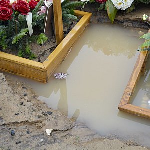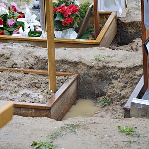 Czy jest tutaj gdzieś piasek, żeby podsypać te groby? - Nie ma. Czasami coś koło nowych grobów zostawią - mówi nam napotkana na miejscu mieszkanka Polkowic. Nowe groby zapadają się głównie dlatego, że ziemia się jeszcze nie osadziła po pogrzebie. -To też zależy od firmy, która dokonuje pochówku -dodaje polkowiczanka - Pomnik, który zleciłam zrobić jest solidny, a inne podmyło. Ziemie trzeba dobrze ubić.
