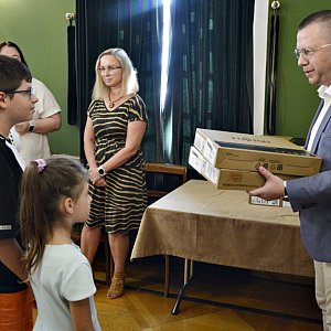 W piątek (26.08) w polkowickim ratuszu do rąk dzieci trafiło pierwsze 15 komputerów. - Cieszę się, że rok szkolny rozpoczynamy z nowym sprzętem i będzie on służył nauce, ale też rozrywce, bo to też jest ważne - mówił burmistrz. Łukasz Puźniecki.