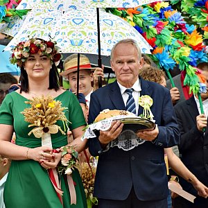 Gmina Grębocice wciąż jest rolnicza. W tym roku starostami dożynek są Aneta Szocik z Proszyc i Bernard Wdowczyk z Obiszowa. Można powiedzieć, że doświadczenie z młodością, bo pan Bernard jest rolnikiem od wielu lat, a pani Aneta dopiero od kilku prowadzi gospodarstwo z mężem. - W tym roku trochę za szybko przyszła ta susza i ziarno nie do końca się wykształciło, ale według mnie trzeba się cieszyć z tego, co nam daje natura i Pan Bóg. Rolnictwo jest naprawdę ciężką profesją, ale tegoroczne plony były niezłe - podsumował Bernard Wdowczyk, który uprawia 70 hektarów pól. - W tym roku zdecydowaliśmy się z mężem na łubin. To były nasze pierwsze plony i nie narzekamy. Gospodarstwo odziedziczyliśmy po rodzicach męża i mamy 60 hektarów - powiedziała nam Aneta Szocik.