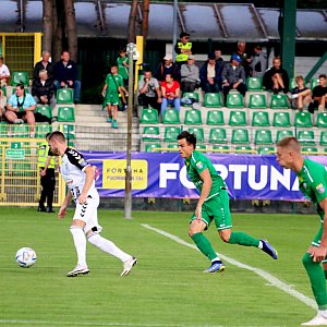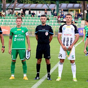 Początek spotkania to spora przewaga gości i do pierwszych minut pachniało golem. Ten padł dopiero w 30 minucie. Golkiper zielono-czarnych ograł we własnym polu karnym napastnika Sandecji otrzymując gromkie brawa od kibiców. Wystarczyła jednak chwila dekoncentracji i Jakub Wojtas wyjmował piłkę z bramki, a na listę strzelców wpisał się Jakub Wróbel.